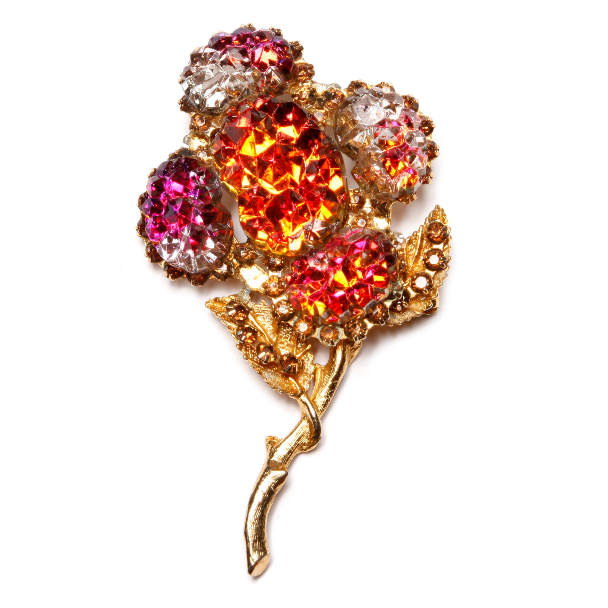 Brooch with molded glass watermelon stones. Signed Alice Caviness.