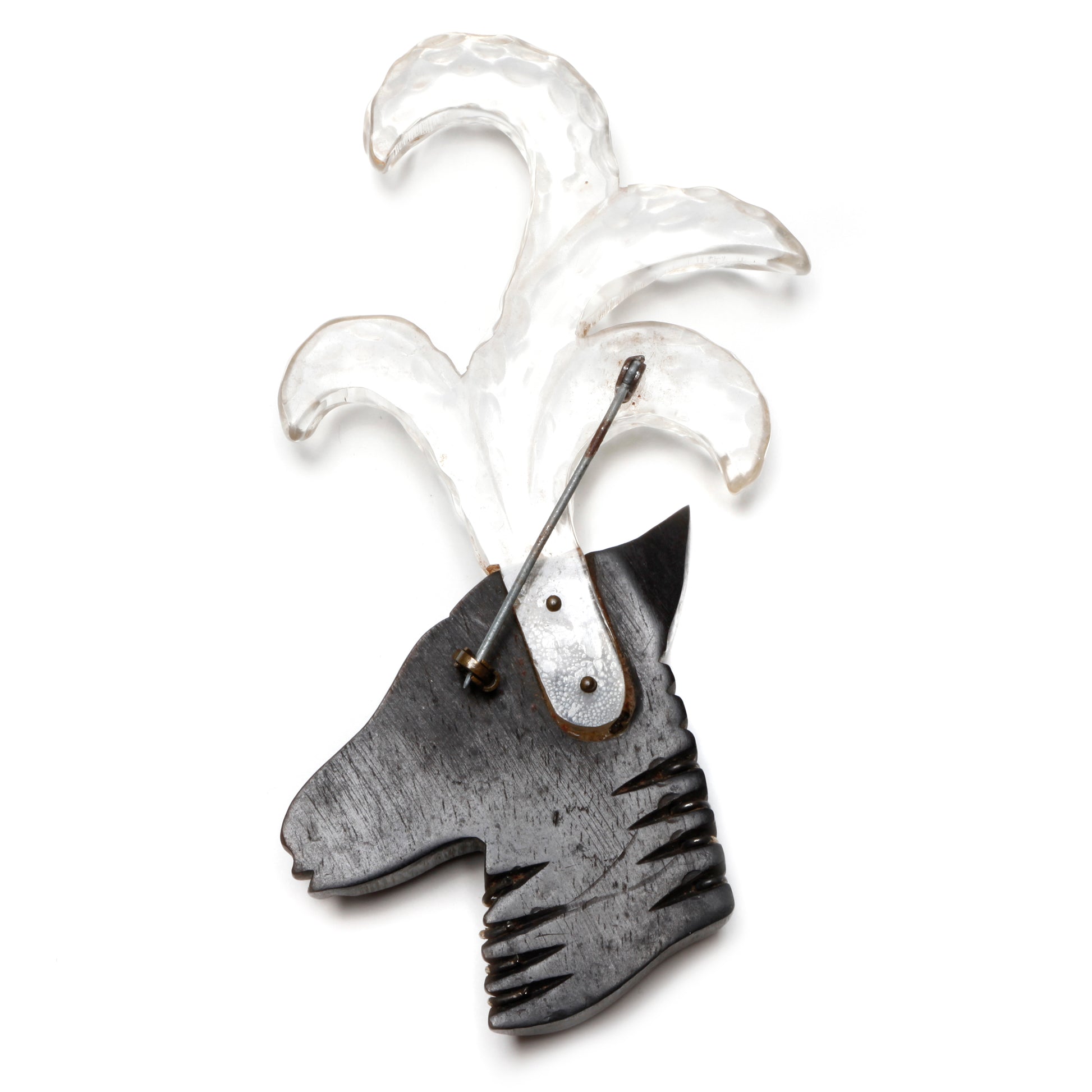 Carved wood gazelle with lucite horn and glass eye. Unsigned, Elzac.
