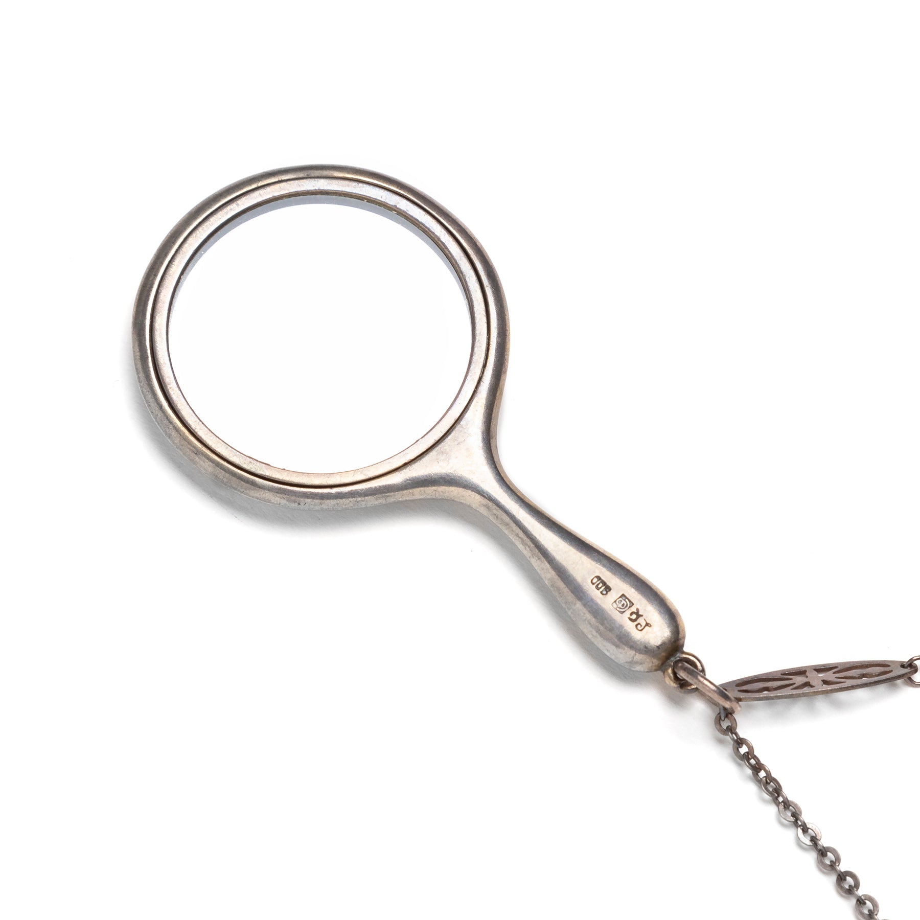 Measurements: Full length, including chain: 14"; Mirror: 2.75" x 1.5"