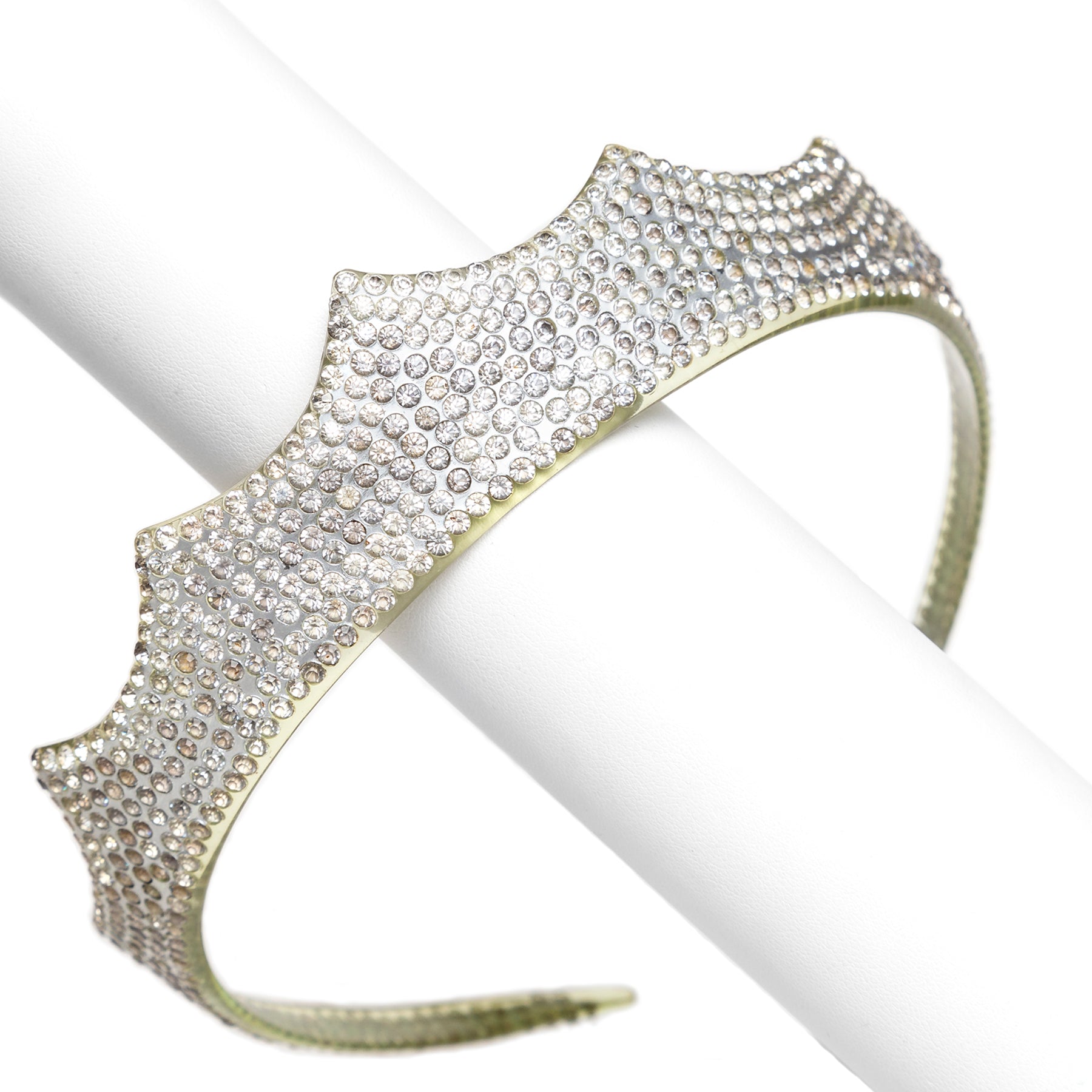 Green celluloid tiara encrusted with clear crystal rhinestones.
