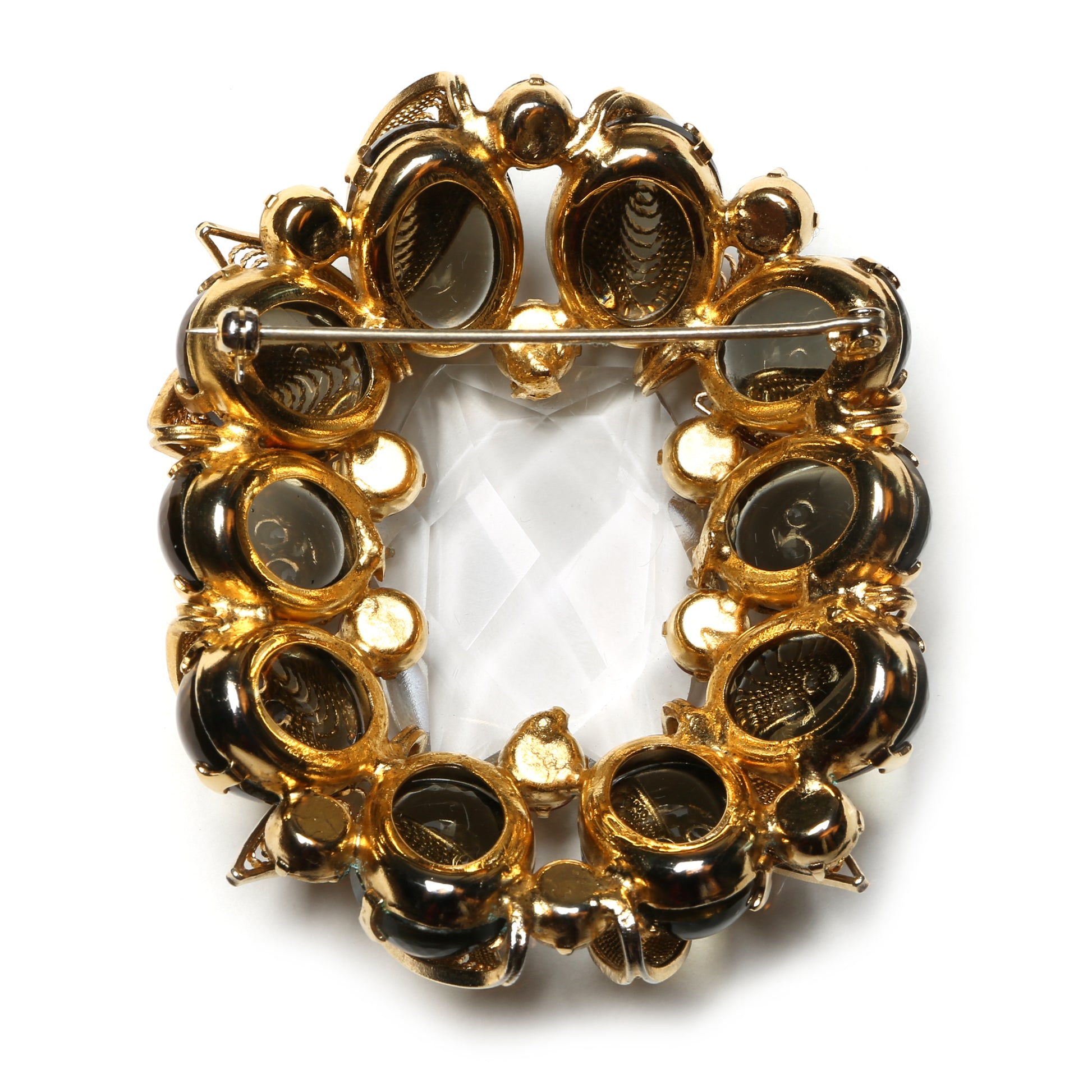 Schreiner Faceted Stone and Gold-Leaf Brooch