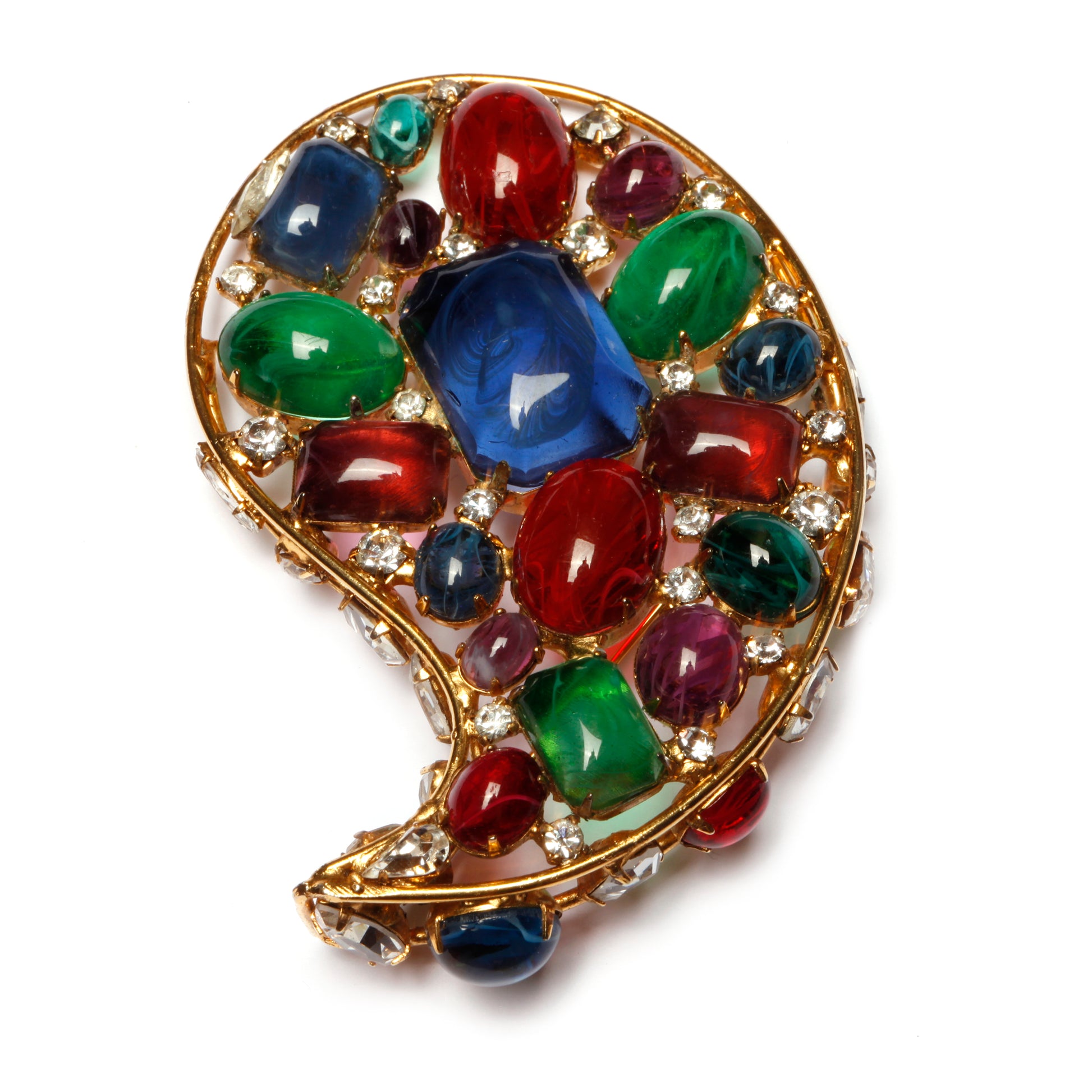 Large paisley brooch by Iradj Moini for Oscar de la Renta. Unsigned, verified Iradj Moini.