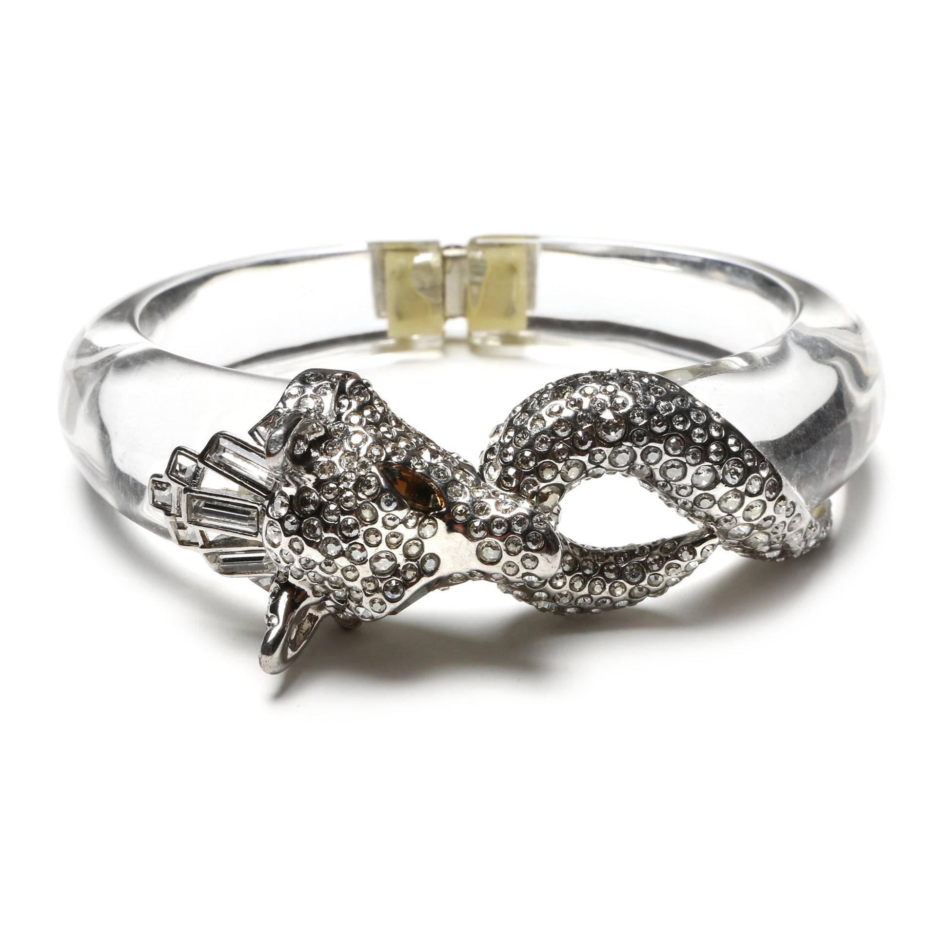 Lucite clamper with diamanté fox and magnetic clasp. Unsigned.