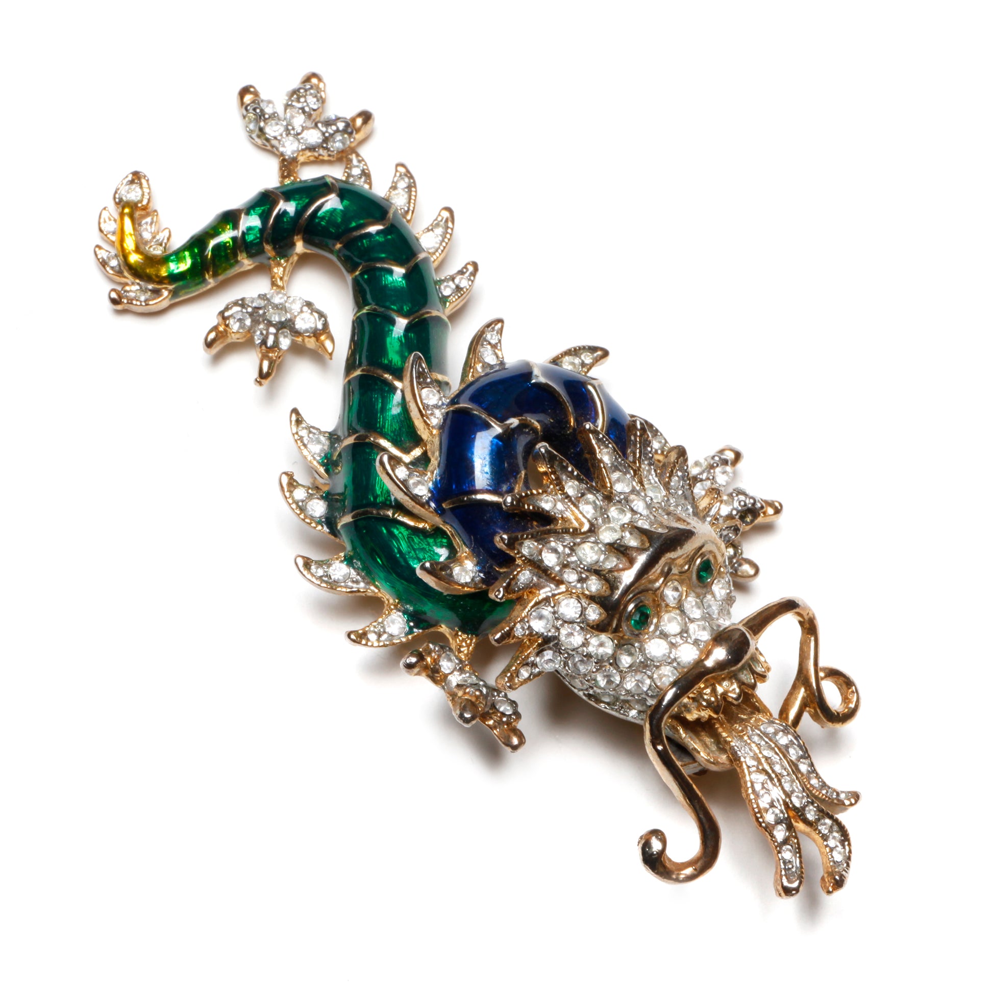 Enamel and diamanté dragon brooch. Unsigned.